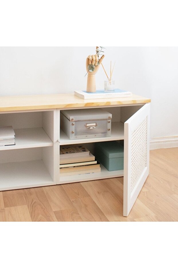 Ahşap malzemeden üretilen bu ürün, kapaklı ve dolaplı tasarımıyla pratik bir kullanım sunar. 40 cm derinliğe, 50 cm yüksekliğe ve 170 cm genişliğe sahiptir. Beyaz rengiyle sade ve ferah bir görünüm sağlar. Ürün 2 yıl garanti süresiyle sunulmaktadır.